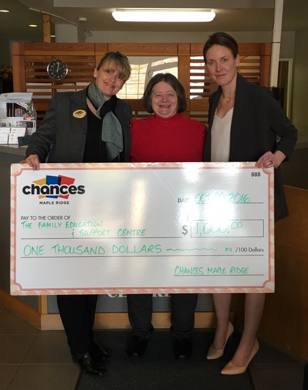 October 20, 2016 โ€“ Chances Maple Ridge donates $1,000 to local family support centre