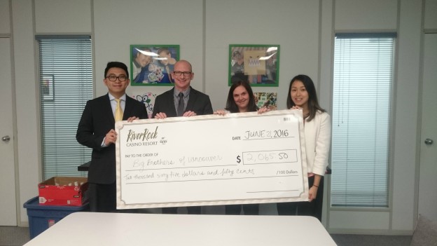 From May 16 to 31, team members at River Rock Casino Resort held a 50/50 and raffle draw as well as a clothing drive, with all proceeds benefiting Big Brothers of Greater Vancouver. During the two weeks the clothing drive was held, 26 garbage bags worth of clothes was collected which generated enough money to recruit, train and support three Big Brothers! The cheque for over $2,000 was presented to Big Brothers on June 21, 2016.