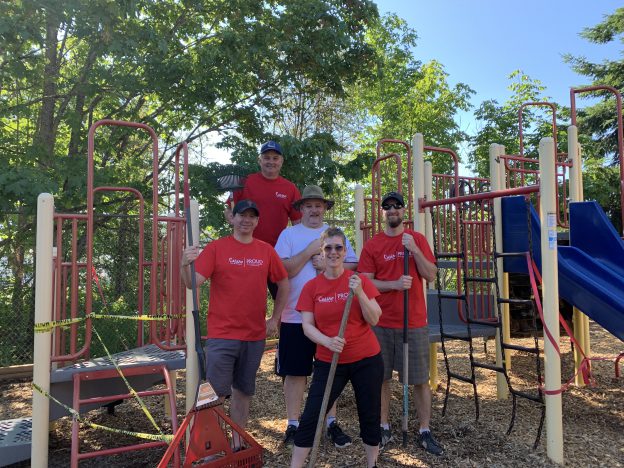 Team members from Casino Nanaimo helped reopen a playground at the Boys & Girls Club of Central Vancouver Island by fluffing mulch in order to pass inspection. Over time, the mulch gets compacted and the playground was closed for safety reasons. After Casino Nanaimo team members helped with the mulch fluffing, the playground passed inspection and was reopened for the kids!